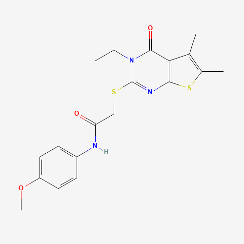- Name: 2-[(3-ethyl-5,6-dimethyl-4-oxo-3,4-dihydrothieno[2,3-d]pyrimidin-2-yl)sulfanyl]-N-(4-methoxyphenyl)acetamide
