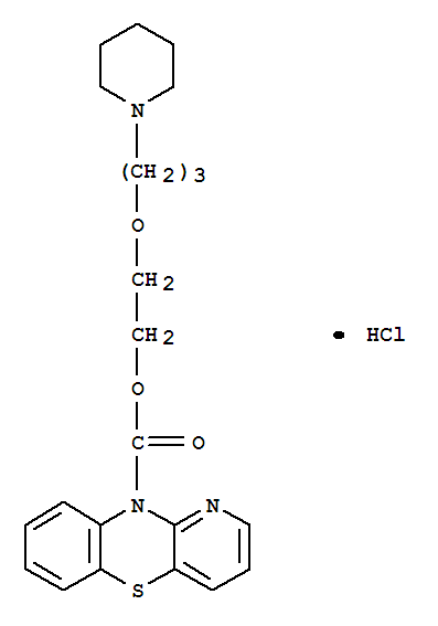 - Synonyms:10H-Pyrido[3,2-b][1,4]benzothiazine-10-carboxylicacid, 2-(3-piperidinopropoxy)ethyl ester, hydrochloride (7CI);10H-Pyrido[3,2-b][1,4]benzothiazine-10-carboxylic acid,2-[3-(1-piperidinyl)propoxy]ethyl ester, monohydrochloride (9CI)