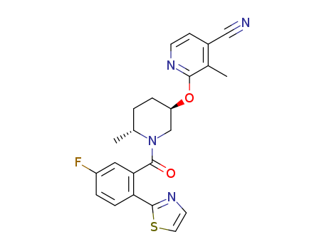 2-{[(3R,6R)-1-{[5-fluoro-2-(1,3-thiazol-2-yl)phenyl]carbonyl}-6-methylpiperidin-3-yl]oxy}-3-methylpyridin-4-carbonitrile(1607428-33-0)