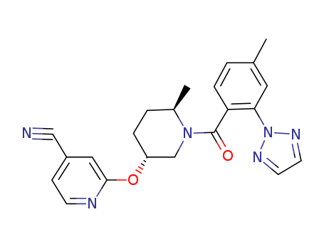 - 1431472-70-6/2-{[(3R,6R)-6-methyl-1-{[4-methyl-2-(2H-1,2,3-triazol-2-yl)phenyl]carbonyl}piperidin-3-yl]oxy}pyridine-4-carbonitrile