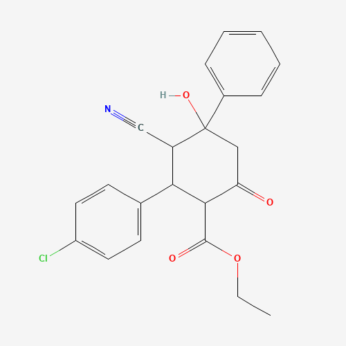 - Synonyms:AKOS024322367;2-(4-CL-PH)-3-CYANO-4-HO-6-OXO-4-PHENYL-CYCLOHEXANECARBOXYLIC ACID ETHYL ESTER