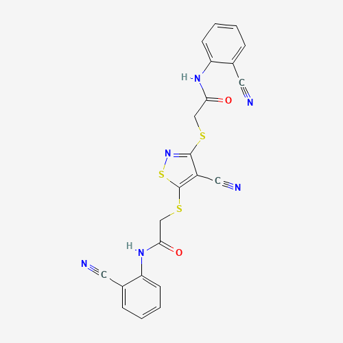 2-[(4-Cyano-3-{[2-(2-cyanoanilino)-2-oxoethyl]sulfanyl}-5-isothiazolyl)sulfanyl]-N-(2-cyanophenyl)acetamide