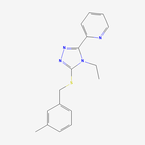 - Synonyms:2-{4-ethyl-5-[(3-methylbenzyl)sulfanyl]-4H-1,2,4-triazol-3-yl}pyridine;STK468174;2-(4-Ethyl-5-((3-methylbenzyl)thio)-4H-1,2,4-triazol-3-yl)pyridine;AKOS003360224;618415-59-1