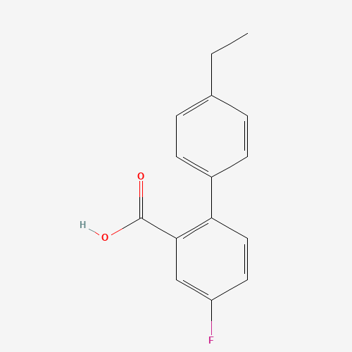 - Synonyms:2-(4-ETHYLPHENYL)-5-FLUOROBENZOIC ACID;1182425-77-9;DTXSID20681259;MFCD12859473;AKOS006082121;4'-Ethyl-4-fluoro[1,1'-biphenyl]-2-carboxylic acid