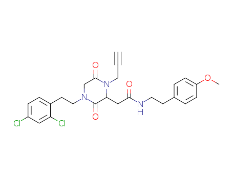 2-(4-(2,4-dichlorophenethyl)-3,6-dioxo-1-(prop-2-yn-1-yl)piperazin-2-yl)-N-(4-methoxyphenethyl)acetamide(1263478-70-1)