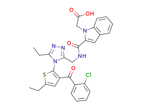 - Synonyms:2-(4-(3-(2-chlorobenzoyl)-5-ethylthiophen-2-yl)-5-ethyl[1,2,4]triazol-3-ylmethylcarbamoyl)indole-1-acetic acid