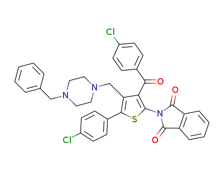 - Synonyms:2-[(4-(4-benzylpiperazin-1-yl)methyl)-3-(4-chlorobenzoyl)-5-(4-chlorophenyl)thiophen-2-yl]isoindoline-1,3-dione