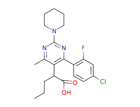 - Name: 2-(4-(4-chloro-2-fluorophenyl)-6-methyl-2-(piperidin-1-yl)pyrimidin-5-yl)pentanoic acid