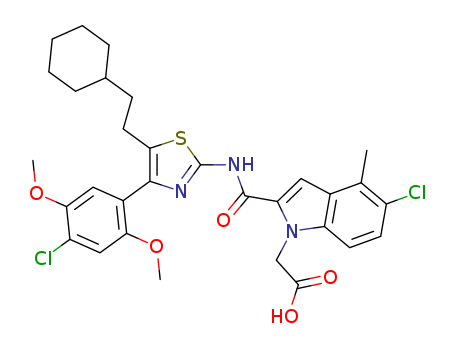 - Name: 2-(4-(4-chloro-2,5-dimethoxyphenyl)-5-(2-cyclohexylethyl)thiazol-2-ylcarbamoyl)-4-methyl-5-chloroindole-1-acetic acid
