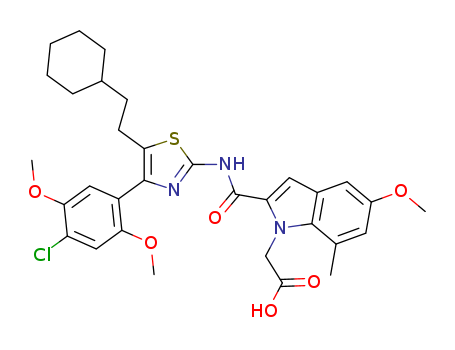 - Name: 2-(4-(4-chloro-2,5-dimethoxyphenyl)-5-(2-cyclohexylethyl)thiazol-2-ylcarbamoyl)-5-methoxy-7-methylindole-1-acetic acid