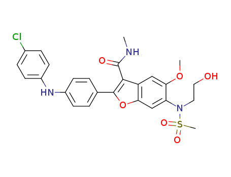 - Name: 2-[4-(4-chloro-phenylamino)-phenyl]-6-[(2-hydroxy-ethyl)-methanesulfonyl-amino]-5-methoxy-benzofuran-3-carboxylic acid methylamide