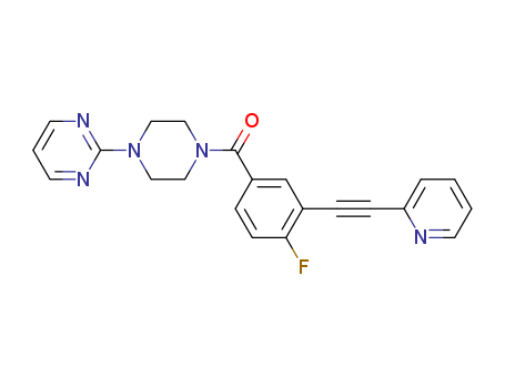 - Synonyms:2-{4-[4-fluoro-3-(pyridin-2-ylethynyl)benzoyl]piperazin-1-yl}pyrimidine