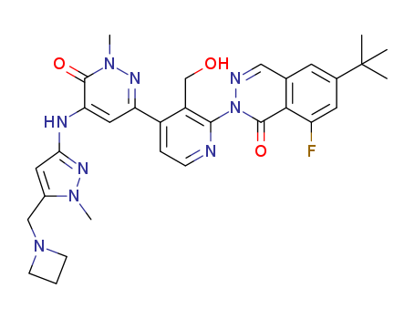 2-{4-[5-(5-(azetidin-1-yl)methyl-1-methyl-1H-pyrazol-3-ylamino)-1-methyl-6-oxo-1,6-dihydro-pyridazin-3-yl]-3-hydroxymethyl-pyridin-2-yl}-6-tert-butyl-8-fluoro-2H-phthalazin-1-one(1423130-00-0)