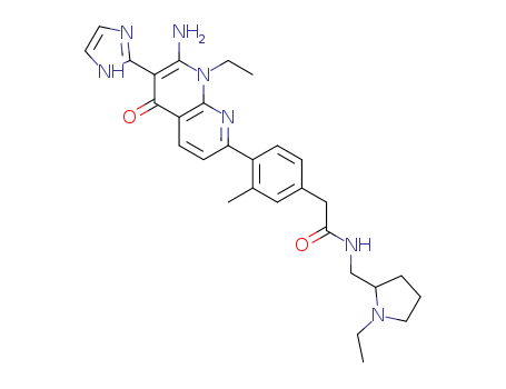 2-{4-[7-Amino-8-ethyl-6-(1H-imidazol-2-yl)-5-oxo-5,8-dihydro-[1,8]naphthyridin-2-yl]-3-methyl-phenyl}-N-(1-ethyl-pyrrolidin-2-ylmethyl)-acetamide(1308916-80-4)