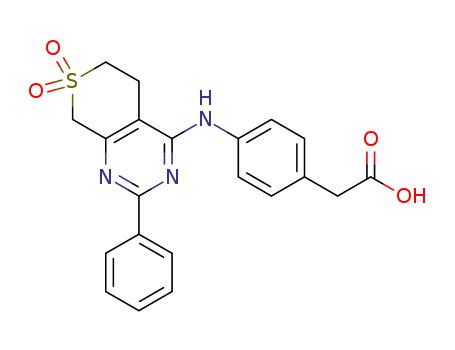 - Synonyms:2-[4-[(7,7-dioxo-2-phenyl-6,8-dihydro-5H-thiopyrano[3,4-d]pyrimidin-4-yl)amino]phenyl]acetic acid