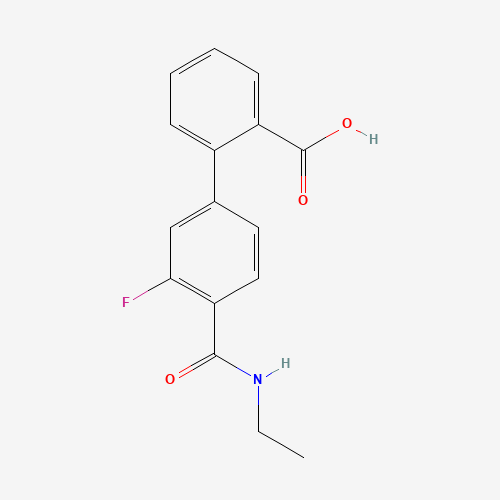 - Synonyms:1261946-32-0;2-[4-(ETHYLCARBAMOYL)-3-FLUOROPHENYL]BENZOIC ACID;DTXSID70683389;MFCD18312723;4'-(Ethylcarbamoyl)-3'-fluoro[1,1'-biphenyl]-2-carboxylic acid