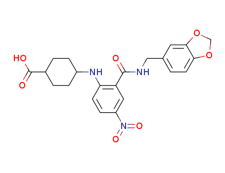 - Synonyms:2-(4-carboxycyclohexylamino)-5-nitro-N-(1,3-benzodioxol-5-ylmethyl)benzamide