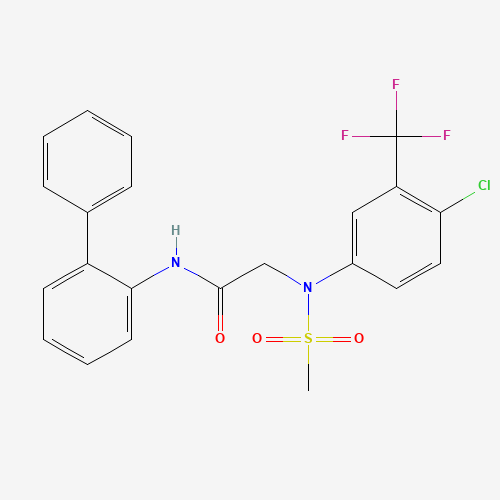 - Synonyms:N-[1,1'-biphenyl]-2-yl-2-[4-chloro(methylsulfonyl)-3-(trifluoromethyl)anilino]acetamide;DTXSID501119211;STL061622;AKOS000376459;2-[4-chloro-N-methylsulfonyl-3-(trifluoromethyl)anilino]-N-(2-phenylphenyl)acetamide;AO-081/41755948;N-biphenyl-2-yl-N~2~-[4-chloro-3-(trifluoromethyl)phenyl]-N~2~-(methylsulfonyl)glycinamide;667875-59-4;N-[1,1'-Biphenyl]-2-yl-2-[[4-chloro-3-(trifluoromethyl)phenyl](methylsulfonyl)amino]acetamide