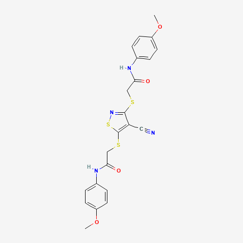 2-[(4-cyano-3-{[2-(4-methoxyanilino)-2-oxoethyl]sulfanyl}-5-isothiazolyl)sulfanyl]-N-(4-methoxyphenyl)acetamide