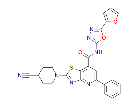 2-(4-cyanopiperidino)-N-[5-(2-furyl)-1,3,4-oxadiazol-2-yl]-5-phenyl-7-thiazolo[4,5-b]pyridinecarboxamide(1313756-02-3)