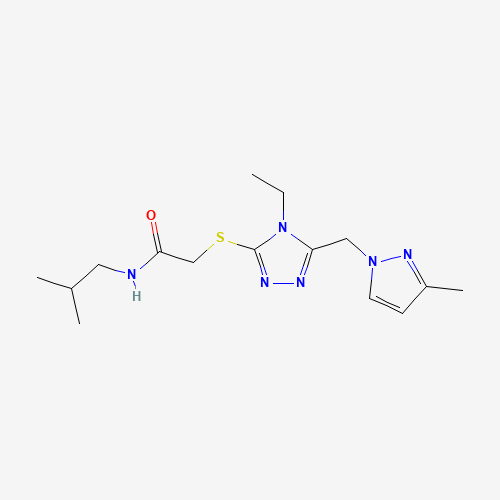 - Name: 2-({4-ethyl-5-[(3-methyl-1H-pyrazol-1-yl)methyl]-4H-1,2,4-triazol-3-yl}sulfanyl)-N-(2-methylpropyl)acetamide