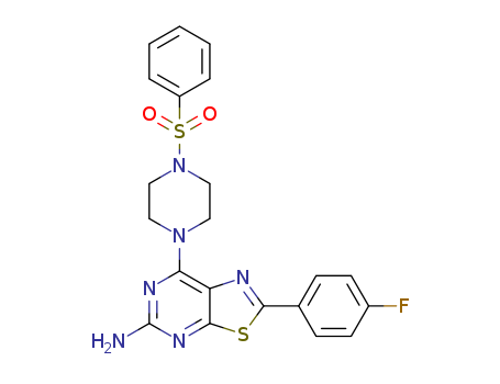 - Synonyms:2-(4-fluorophenyl)-7-(4-(phenylsulfonyl)piperazin-1-yl)thiazolo-[5,4-d]pyrimidin-5-amine