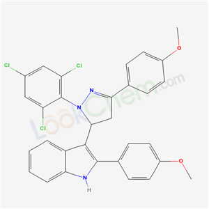 2-(4-methoxyphenyl)-3-[3-(4-methoxyphenyl)-1-(2,4,6-trichlorophenyl)-4,5-dihydro-1H-pyrazol-5-yl]-1H-indole(76195-74-9)