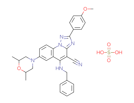 2-(4-methoxyphenyl)-7-(2,6-dimethylmorpholin-4-yl)-5-benzylamino-4-cyano-s-triazolo[1,5-a]quinoline hydrogensulfate(1092536-73-6)