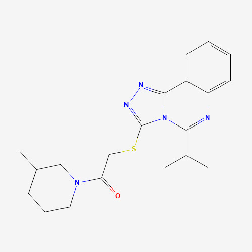 - Synonyms:DTXSID201114486;AKOS000744447;SR-01000344555;SR-01000344555-1;2-[[5-(1-Methylethyl)-1,2,4-triazolo[4,3-c]quinazolin-3-yl]thio]-1-(3-methyl-1-piperidinyl)ethanone;626218-36-8