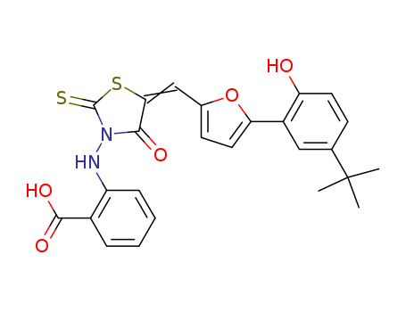 - Name: 2-{5-[1-[5-(5-tert-butyl-2-hydroxyphenyl)furan-2-yl]methylidene]-4-oxo-2-thioxothiazolidin-3-ylamino}benzoic acid
