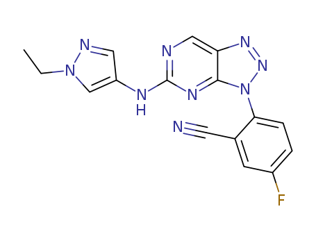 - Name: 2-[5-(1-ethyl-1H-pyrazol-4-ylamino)-[1,2,3]triazolo[4,5-d]-pyrimidin-3-yl]-5-fluoro-benzonitrile