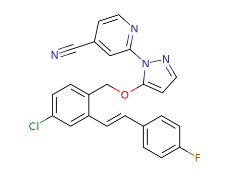 - 1613413-11-8/2-[5-[[4-chloro-2-[(E)-2-(4-fluorophenyl)ethenyl]phenyl]methoxy]pyrazol-1-yl]pyridine-4-carbonitrile