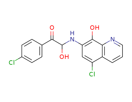 - Synonyms:Acetophenone,4'-chloro-2-[(5-chloro-8-hydroxy-7-quinolyl)amino]-2-hydroxy- (8CI)