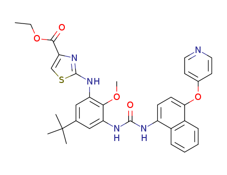 - Name: 2-(5-tert-Butyl-2-methoxy-3-{3-[4-(pyridin-4-yloxy)-naphthalen-1-yl]-ureido}-phenylamino)-thiazole-4-carboxylic acid ethyl ester