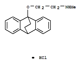 - Synonyms:Ethanamine,2-(9,10-ethanoanthracen-9(10H)-yloxy)-N-methyl-, hydrochloride (9CI);Ethylamine, 2-(9,10-ethanoanthracen-9(10H)-yloxy)-N-methyl-, hydrochloride(8CI); 9,10-Ethanoanthracene, ethanamine deriv.; 9-(b-Methylaminoethoxy)-9,10-dihydro-9,10-ethanoanthracenehydrochloride