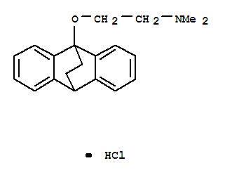 - Synonyms:Ethanamine,2-(9,10-ethanoanthracen-9(10H)-yloxy)-N,N-dimethyl-, hydrochloride (9CI);Ethylamine, 2-(9,10-ethanoanthracen-9(10H)-yloxy)-N,N-dimethyl-, hydrochloride(8CI); 9,10-Ethanoanthracene, ethanamine deriv.;9-Dimethylaminoethoxy-9,10-ethano-9,10-dihydroanthracene hydrochloride