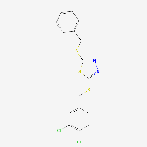 - Synonyms:2-(Benzylthio)-5-((3,4-dichlorobenzyl)thio)-1,3,4-thiadiazole;477333-31-6;STK722929;AKOS002174060;2-(benzylsulfanyl)-5-[(3,4-dichlorobenzyl)sulfanyl]-1,3,4-thiadiazole