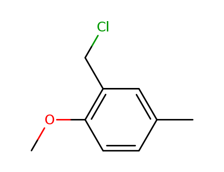 - Synonyms:6-Methoxy-3-methyl-benzylchlorid;2-(3-FLUOROPHENYLMETHANESULPHONYL)THIOACETAMIDE;2-Chlormethyl-4-methyl-anisol;6-Methoxy-3-methyl-1-chlormethyl-benzol;Methyl-(4-methyl-2-chlormethyl-phenyl)-aether;2-chloromethyl-4-methyl-anisole;2-Methoxy-5-methylbenzyl chloride;