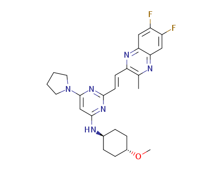 - Synonyms:2-[(E)-2-(6,7-difluoro-3-methylquinoxalin-2-yl)vinyl]-N-(trans-4-methoxycyclohexyl)-6-pyrrolidin-1-ylpyrimidin-4-amine
