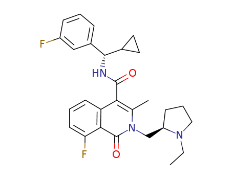 2-((R)-1-ethyl-pyrrolidin-2-ylmethyl)-8-fluoro-3-methyl-1-oxo-1,2-dihydro-isoquinoline-4-carboxylic acid [(S)-cyclopropyl-(3-fluoro-phenyl)-methyl]-amide(1215094-25-9)