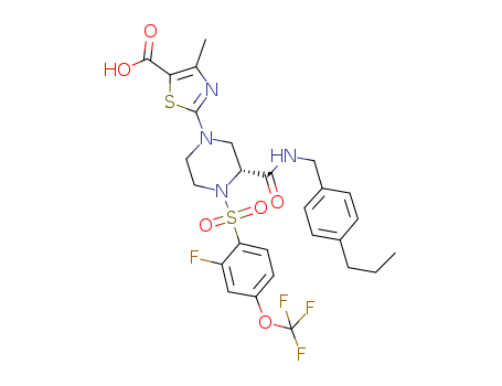 - Synonyms:2-[(R)-3-(4-propyl-benzylcarbamoyl)-4-(2-fluoro-4-trifluoromethoxy-benzenesulfonyl)-piperazin-1-yl]-4-methyl-thiazole-5-carboxylic acid