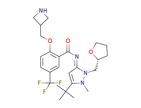 - Synonyms:2-(azetidin-3-ylmethoxy)-N-{(3E)-5-tert-butyl-1-methyl-2-[(2R)-tetrahydrofuran-2-ylmethyl]-1,2-dihydro-3H-pyrazol-3-ylidene}-5-(trifluoromethyl)benzamide