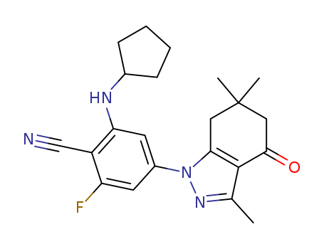 - Synonyms:2-(cyclopentylamino)-6-fluoro-4-(3,6,6-trimethyl-4-oxo-4,5,6,7-tetrahydro-1H-indazol-1-yl)benzonitrile