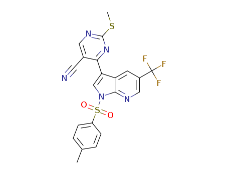 - Synonyms:2-(methylthio)-4-(1-tosyl-5-(trifluoromethyl)-1H-pyrrolo[2,3-b]pyridin-3-yl)pyrimidine-5-carbonitrile