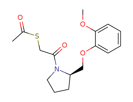 - Synonyms:(S)-(-)-2-((2-Methoxyphenoxy)methyl)-3-(2-(acetylthio)acetyl)pyrrolidine;Ethanethioic acid,S-(2-(2-((2-methoxyphenoxy)methyl)-1-pyrrolidinyl)-2-oxoethyl) ester,(S);Ethanethioic acid,S-[2-[2-[(2-methoxyphenoxy)methyl]-1-pyrrolidinyl]-2-oxoethyl] ester,(S)-(9CI);