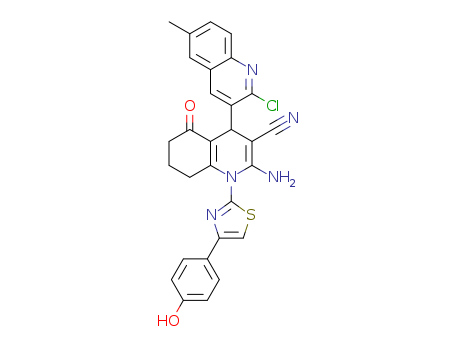 - Name: 2-amino-4-(2-chloro-6-methyl(3-quinolyl))-5-oxo-1-(4-hydroxyphenylthiazol-2-yl)-1,4,5,6,7,8-hexahydroquinoline-3-carbonitrile