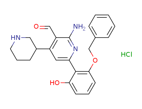 - Synonyms:2-amino-6-[2-(benzyloxy)-6-hydroxyphenyl]-4-(3-piperidinyl)nicotinaldehyde hydrochloride
