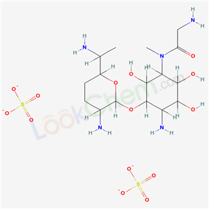 - Name: 2-amino-N-[4-amino-3-[3-amino-6-(1-aminoethyl)tetrahydropyran-2-yl]oxy-2,5,6-trihydroxy-cyclohexyl]-N-methyl-acetamide disulfate