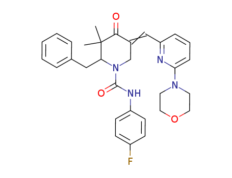 2-benzyl-3,3-dimethyl-5-[1-(6-morpholin-4-yl-pyridin-2-yl)-methylidene]-4-oxo-piperidine-1-carboxylic acid (4-fluoro-phenyl)-amide(1096166-96-9)