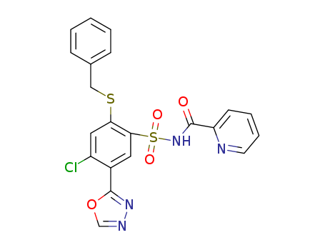 - Synonyms:2-benzylthio-4-chloro-5-(1,3,4-oxadiazol-2-yl)-N-(pyridine-2-carbonyl)benzenesulfonamide